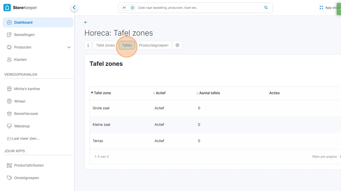 6. Klik op "Tafel zones"