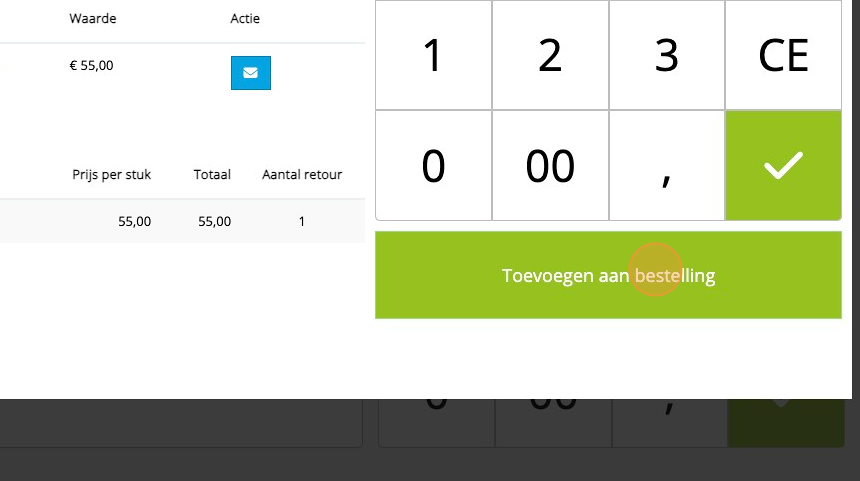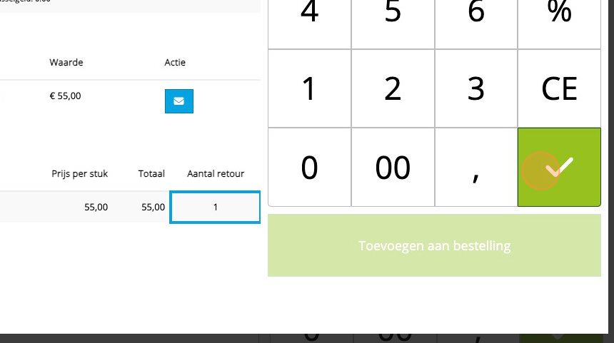 3. Druk op de "0" bij "aantal retour".