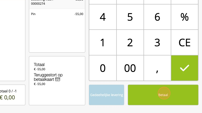 7. Indien "snelle PIN checkout" aanstaat kun je het retourpinnen direct starten. Zo niet, druk op "Betalen".