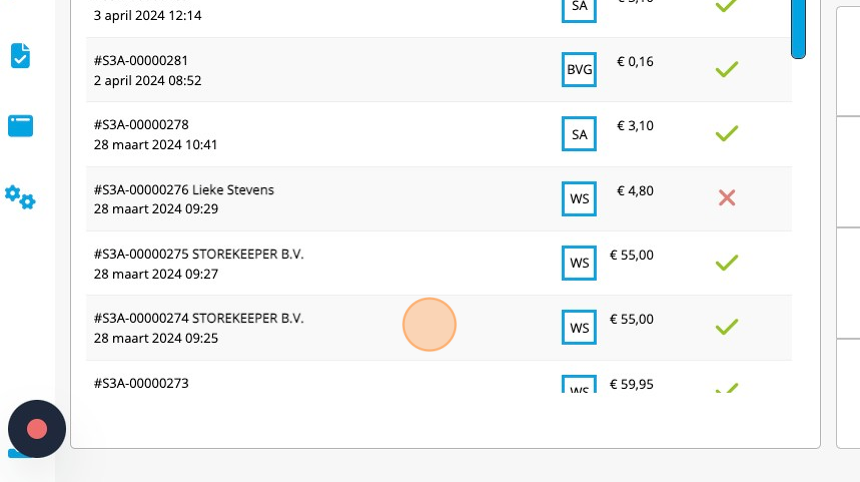 2. Druk op de bestelling die je (deels) wilt retourneren.