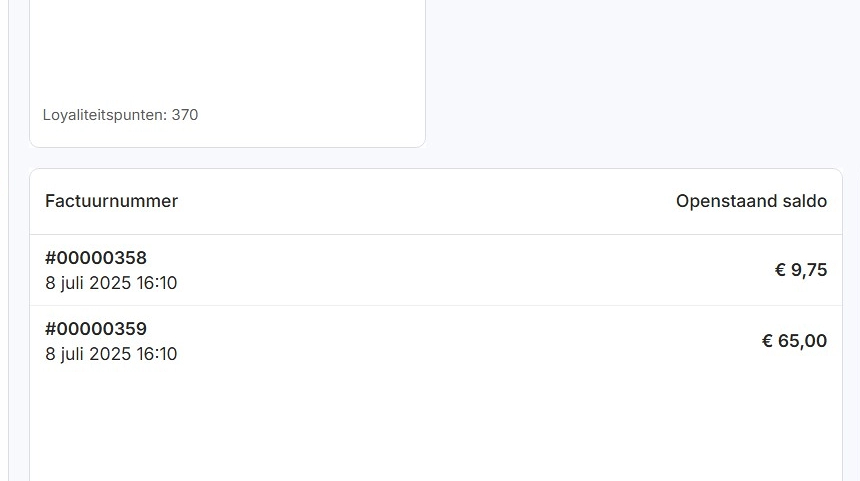 12. Na afrekenen kom je terug in het overzicht met de facturen. Je kunt dit veld verlaten of nog een factuur afrekenen.
