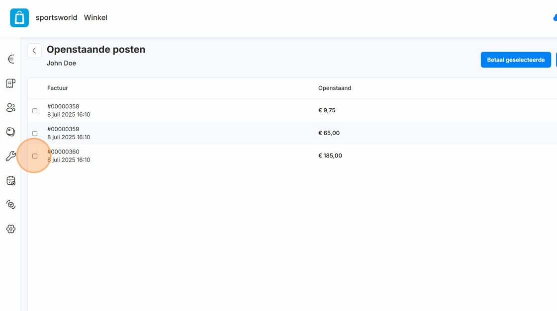 13. Je kunt ook meerdere orders tegelijk afrekenen. Vink de gewenste facturen aan. In dit voorbeeld vinken we de overgebleven 2 facturen aan.