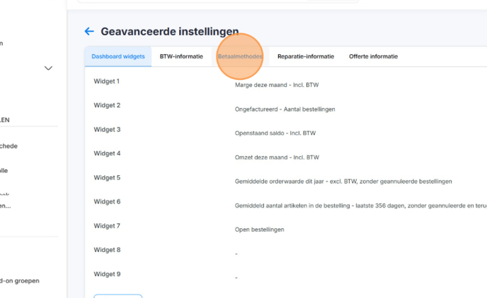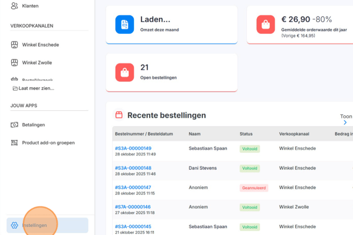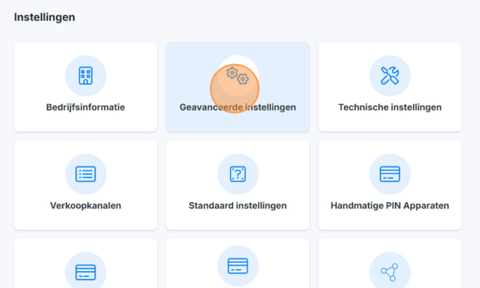 1. Open de backoffice en ga naar Instellingen