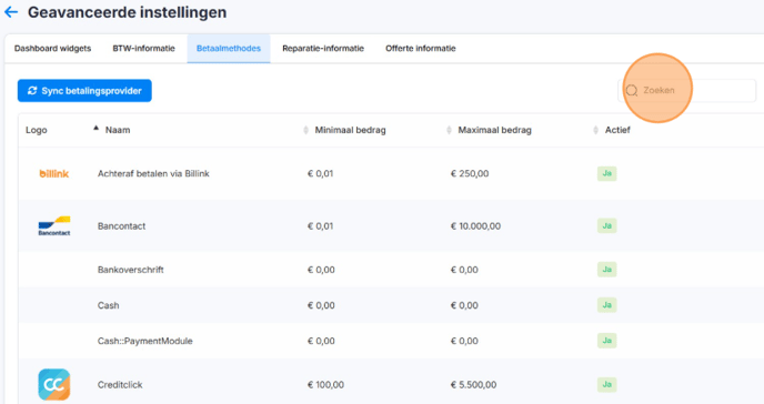 3. Druk op Betaalmethoden