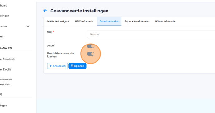6. Vink 'Beschikbaar voor alle klanten' uit.