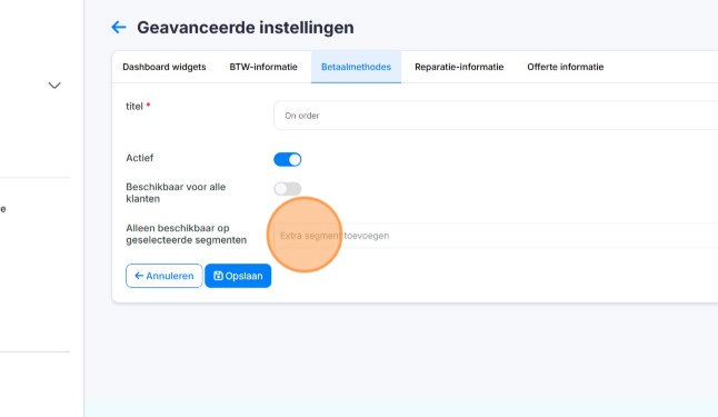 Je hebt de gekozen betaalmethode nu exclusief gemaakt voor de aangegeven segmenten!