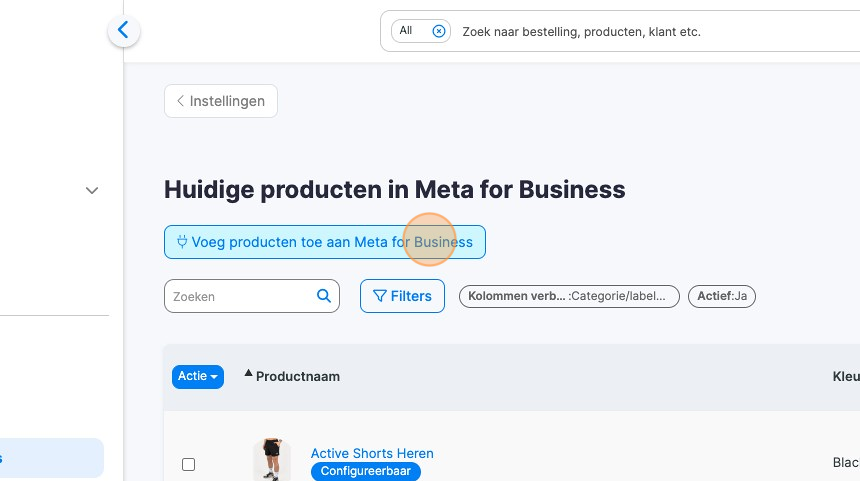 1. Klik op het gewenste verkoopkanaal. "Meta for Business" in dit geval.