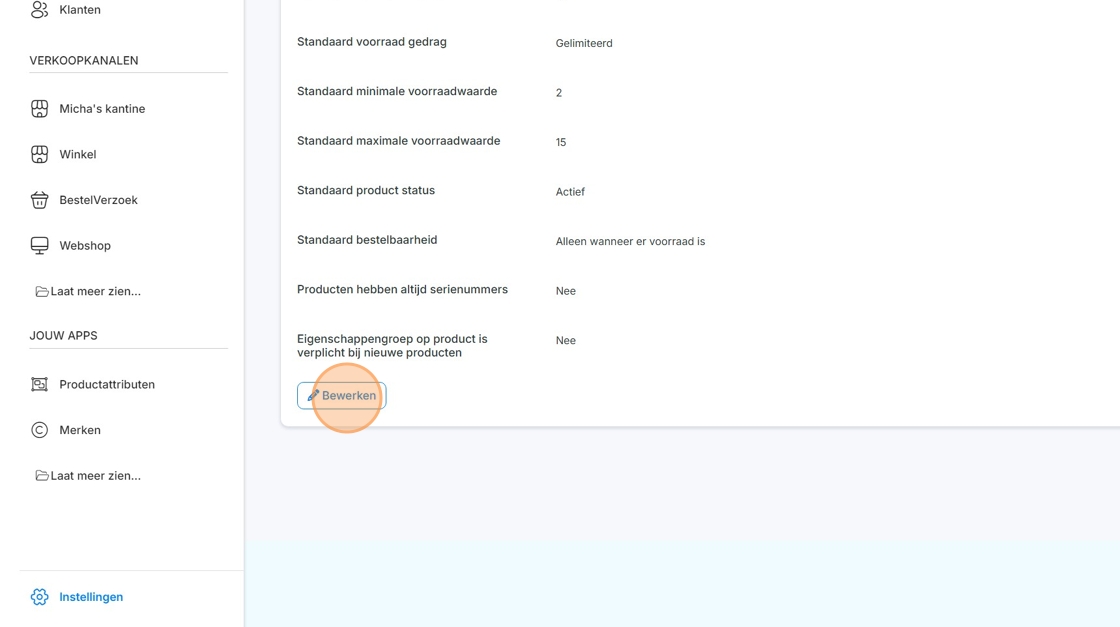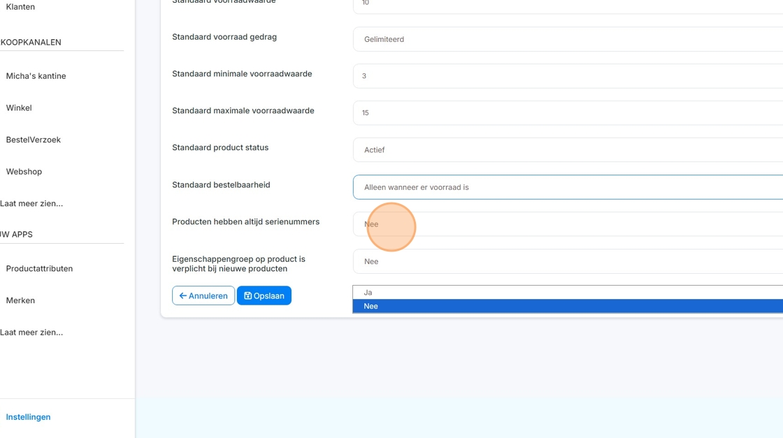 11. Bij "Standaard maximale voorraadwaarde" kun je aangeven hoeveel je standaard maximaal op voorraad wilt hebben.