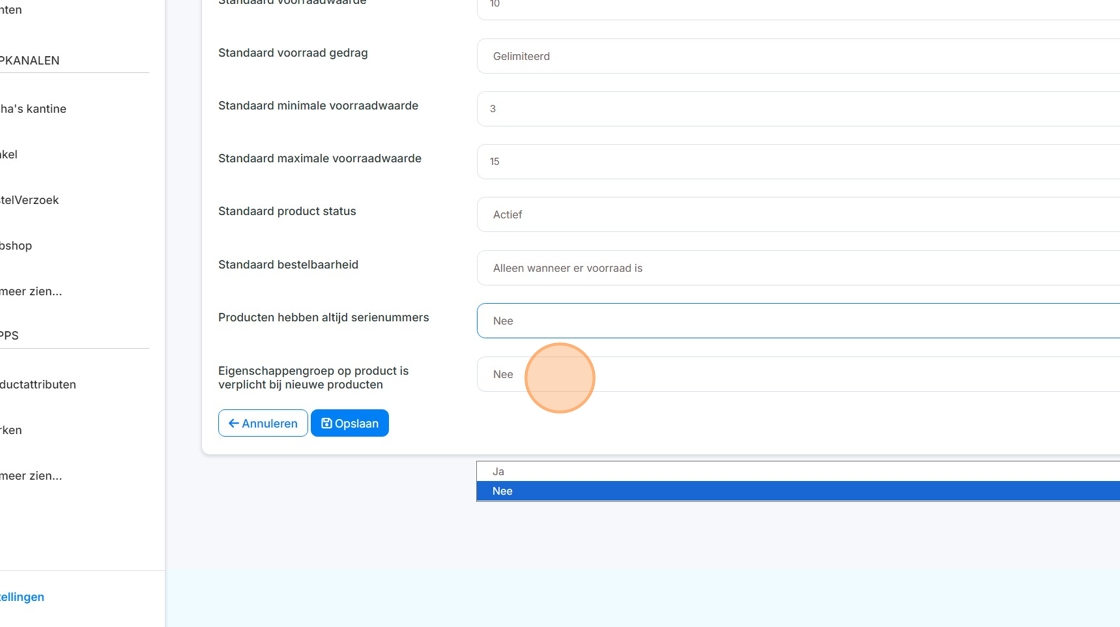 Hoe bepaal ik zelf wat de standaard waarden zijn bij aanmaken van een nieuw product? Het kan zijn dat jij een vaste minimum voorraadwaarde hanteert of het voorraad gedrag liever standaard op altijd wilt hebben staan.