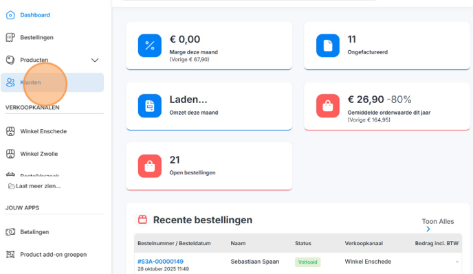 1. Open de backoffice en ga naar Klanten