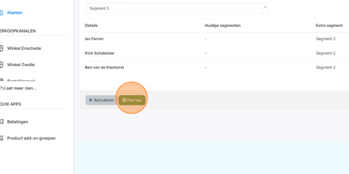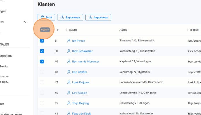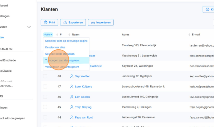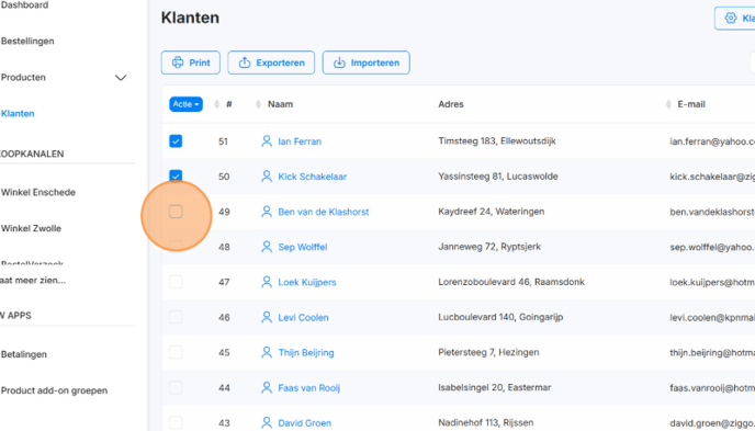 2. Selecteer de klanten die je wilt toevoegen