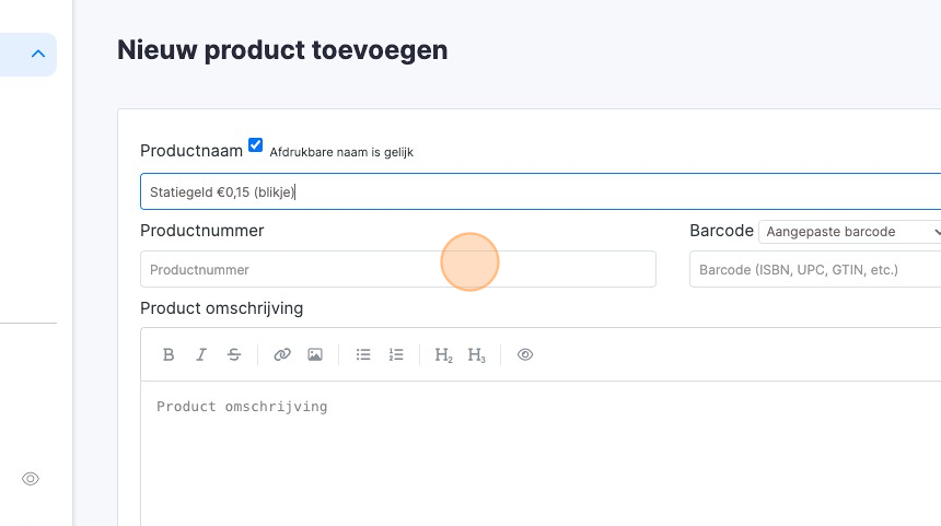 3. Vul de productnaam in. Bijvoorbeeld: Statiegeld €0,15 (blikje)