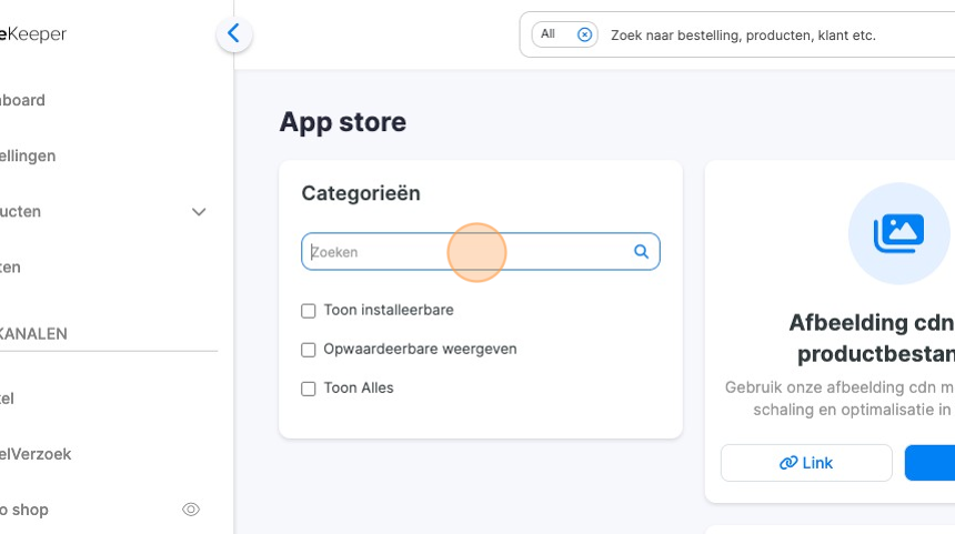17. Zoek in het zoekveld naar het product waaraan je statiegeld wilt koppelen.