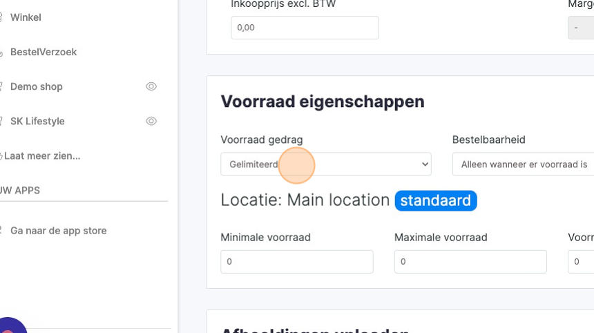 6. Zet het voorraadgedrag op 'onbeperkt'.