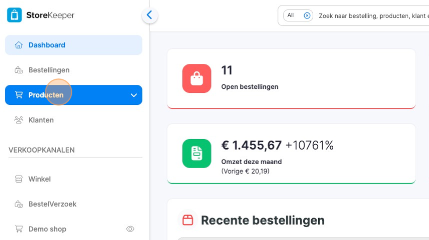 Stap 1: Het toevoegen van statiegeld als product in de backoffice. Je dient voor elk type statiegeld een product aan te maken. Bijvoorbeeld: Statiegeld €0,15 (blikje), Statiegeld €0,25 (petfles) etc.